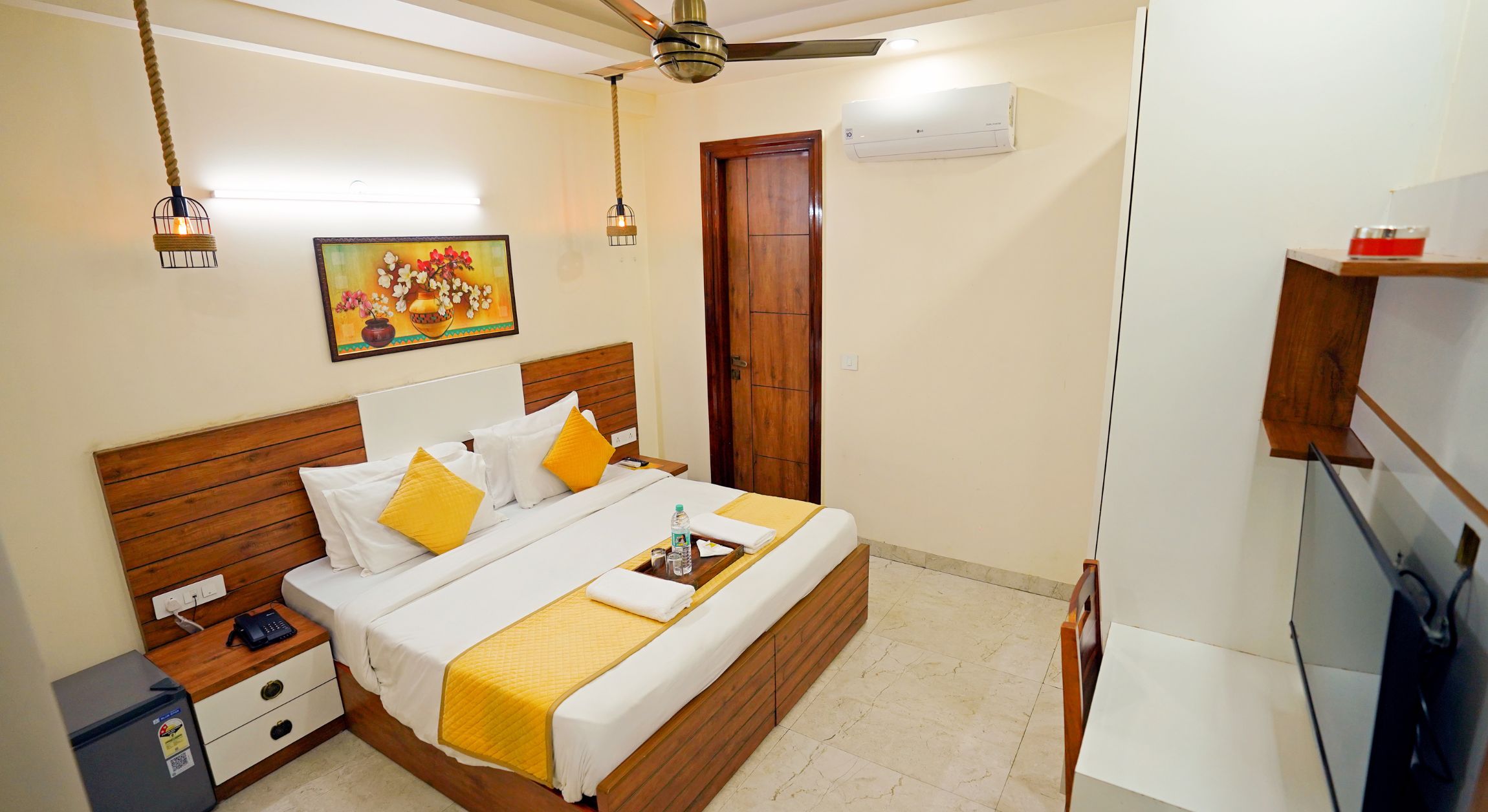 Experience comfort and elegance in our Deluxe Room, designed to offer a relaxing stay in the heart of Gurugram. Spread across 220 sq. ft., this room combines modern amenities with a warm ambiance to make you feel at home.